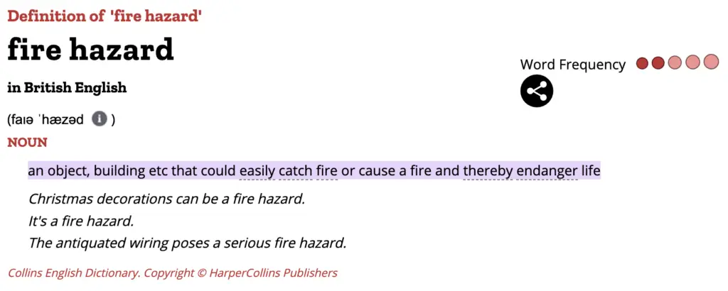This definition of fire hazard stresses the point that, just because there is a fire hazard present, this does not necessarily mean that an accidental destructive fire will occur. Educating ourselves on the risks associated with fire hazards, and how to prevent these fire hazards from causing an unintentional fire, can allow us a potential lifetime of enjoyment from those appliances that pose a fire hazard risk.
